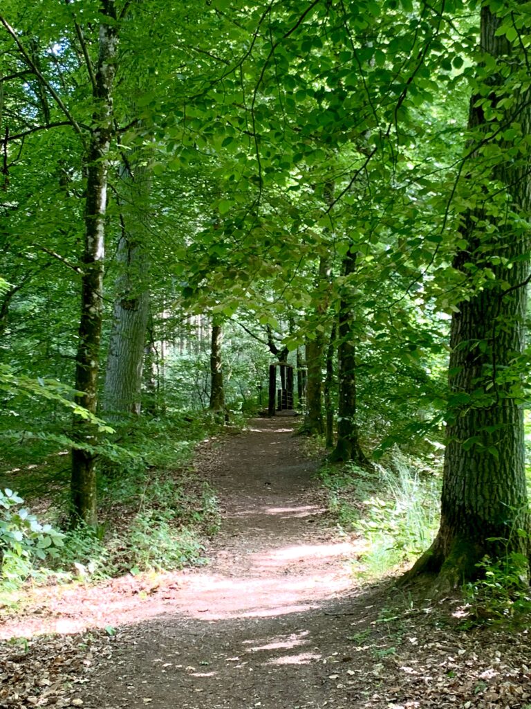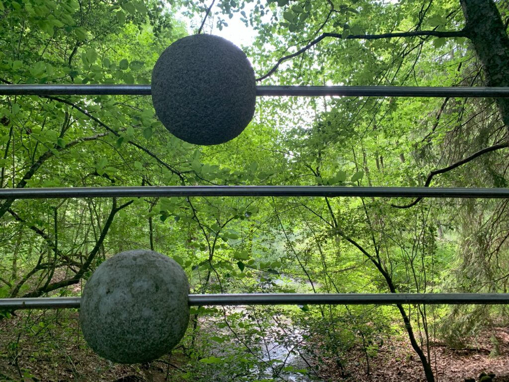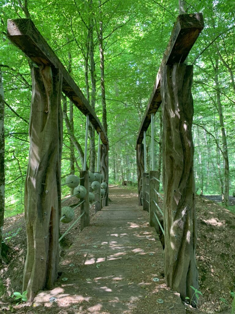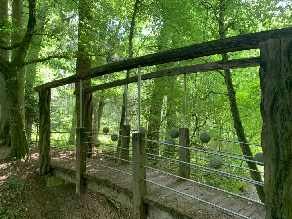Beim Holzobjektkunstwerk „Die Vogelpredigt“ von Willi Leo Hengge handelt es sich um das größte Kunstwerk auf dem Besinnungsweg Hainsacker. Die Geländer der Brücke wurden als Notenzeile mit Steinkugeln nachempfunden.