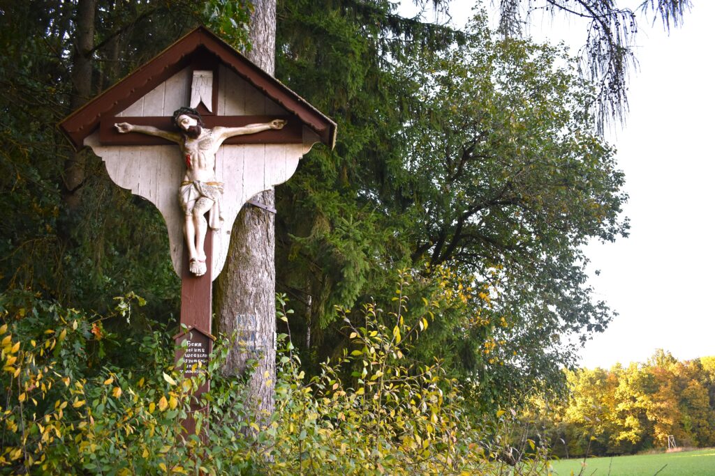 Das Kreuz stammt aus dem 18. Jahrhundert und war ursprünglich mit einem Blechchristus versehen. Beim jährlichen Flurumgang an Christi Himmelfahrt wird vor dem Kreuz ein Altar aufgestellt.